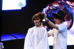 中長髮模特兒示範現在日本流行的編梳造型,首先修剪一下過長的瀏海,瀏海會影響我們的臉型也是人們看臉時會注意到的重點部位。野口老師今天幫編梳模特兒剪一個快要碰到眼睛的長度瀏海。野口老師說:「若是女性顧客希望不只有一成不變只能維持同一方向的瀏海,剪出一個斜度出來在髮根部位吹蓬製造可愛的感覺,不論往旁撥或隨性的往後撥都會有不同效果出來。」