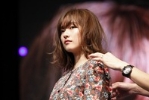 野口老師在示範造型前先以投影片詮譯今年秋冬東京流行趨勢,在投影片上的攝影作品裡雖是同個模特兒,但不同服裝與髮型造型會有不同風格出現,跳脫過去短髮應有的樣子,在短髮內層點綴一點藍色系的挑染。造型上帶點溼亮的感覺在日本從去年開始是蔚為風潮,在今天實際操作示範的幾款模特兒造型,也會採用内層灰棕色調挑染,搭配微捲髮讓髮型在隨興氛圍中更調和出恰到好處的女人味。
