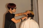緊接者是由設計師Sandy做剪染操作示範,Sandy在做示範時大部份時間在分享其在沙龍現場如何與同事或客人互動。「信任」可讓我們與客人、家人或同事團結而形成一種無形但有實質力量的連結,在客人提出問題之前先解決她的問題,以建立彼此間的信任感,以能在工作場合中順利圓滿達成團隊工作;設計師本身要建立自信與亮麗外表,讓客人進門第一眼即感覺服務後能像設計師一樣漂亮美麗;客人除了擁有漂亮髮型踏出沙龍外,對店內環境乾淨度、燈光、音樂、服務人員是否有帶微笑等氛圍是非常在意的;時間掌控也很重要,要讓客人感覺還很舒適時讓她離開沙龍,而不是為了美麗讓客人在沙龍耗上四五個小時或一整天;Sandy以一個實例與現場設計師分享;就是有一個常客他有些頭皮屑,當天Sandy特別交待實習設計師在沖水時要特別沖乾淨,當沖完水後這位客人滿臉不高興的樣子,因為是熟客,所以Sandy就問這位客人為何臉臭臭的,「您們的服務流程本來就是要沖乾淨,為何還要特別交待呢?」。另外現場很忙碌時一些小細節更要注意,例如:要客人衣領沖濕等小失誤會讓客人產生不悅,此時應立即以危機處理化解之,所以服務流程的建立是沙龍最重要的工作,讓每個同仁用此準則去服務客人,久而久之即變成一種必然的反射動作,而不用再去修正。