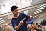造型方面,長髮Model髮中髮尾交錯鋸齒染髮。染後紫色霧面的髮色目前能染出這麼漂亮的只有KEUNE做得到。低調玩色彩,外貌看似內斂的霧紫,但內層卻是鮮明活潑的色調。電棒隨易用捲也是一個賞心悅目的造型,亦可加上編髮製造出休閒渡假風格。中長髮Model使用BLEND的「聚光燈」、「亂有型」髮蠟混搭造型。