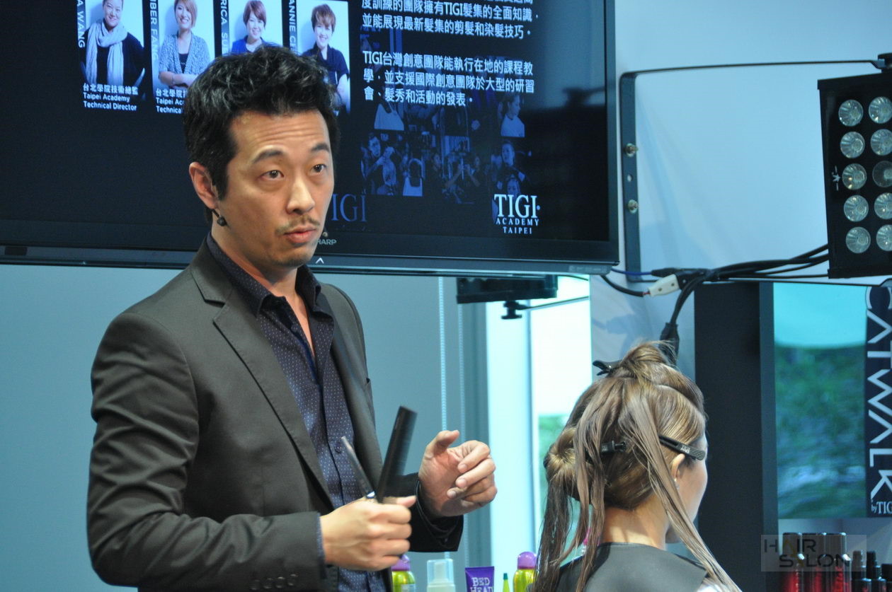 由TIGI台灣創意團隊Ralf Boss、Andy、Frank、Andrea、Ella、Amber、Erica、Annie..等等與TIGI大使,以雙聲道講解TIGI 髮型集流行趨勢,並分二段分別各實際操作示範三款剪染造型。