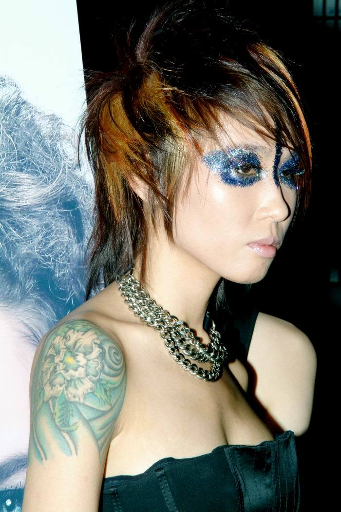 彩妝上洋溢著Shiny的亮眼春色,從煙燻重點的彩妝表現到明年著重下眼線的表現,主要都是跟隨著髮型變化的趨勢步調,去年的妹妹瀏海表現及今年不連接、不對稱低層次的髮型剪裁,在眼睛彩妝的表現就顯得特別的重要,希望不受到瀏海髮線的影響設計了這款「電眼」彩妝,所以在這場派對當中,TIGI彩妝師Marica也運用了也很藍色、綠色、紫色及紅色的亮粉、亮片及彩珠,貼黏出化妝舞會般的眼罩,閃亮的背後多為模特兒增添了神秘感,自然的髮色、柔美的髮片線條加上強眼Shiny的彩妝搭配,讓整體的造型達到了最佳完美狀態,以最性感的混搭魅力傳遞了今年春夏最活躍、熱情的80年代復古風。