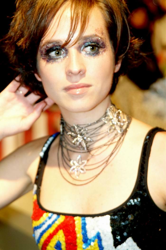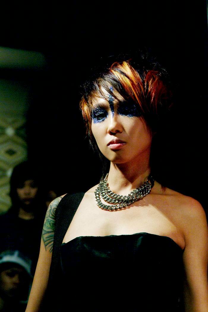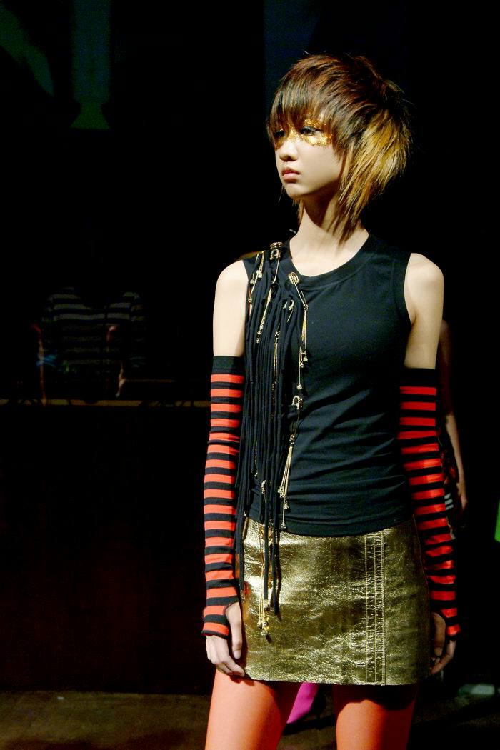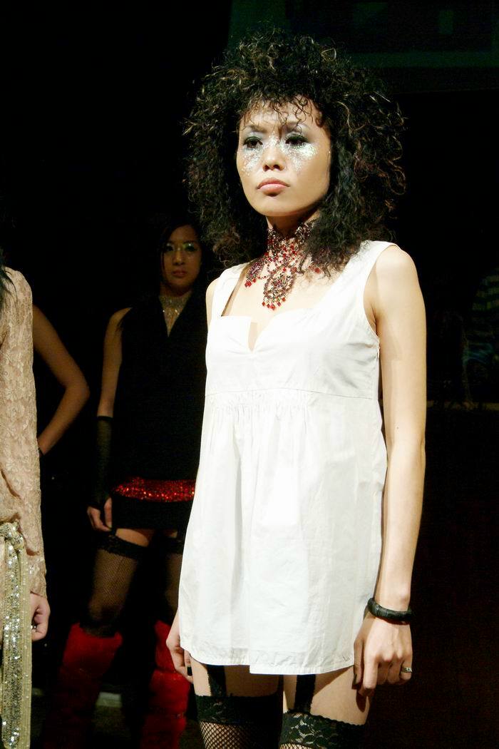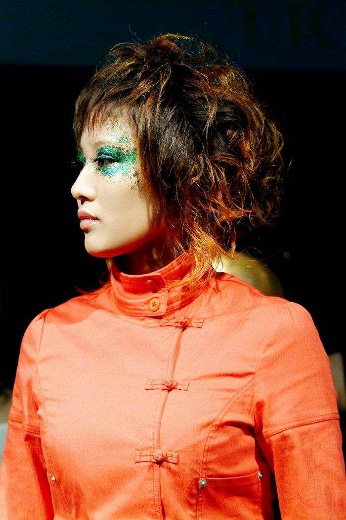 彩妝上洋溢著Shiny的亮眼春色,從煙燻重點的彩妝表現到明年著重下眼線的表現,主要都是跟隨著髮型變化的趨勢步調,去年的妹妹瀏海表現及今年不連接、不對稱低層次的髮型剪裁,在眼睛彩妝的表現就顯得特別的重要,希望不受到瀏海髮線的影響設計了這款「電眼」彩妝,所以在這場派對當中,TIGI彩妝師Marica也運用了也很藍色、綠色、紫色及紅色的亮粉、亮片及彩珠,貼黏出化妝舞會般的眼罩,閃亮的背後多為模特兒增添了神秘感,自然的髮色、柔美的髮片線條加上強眼Shiny的彩妝搭配,讓整體的造型達到了最佳完美狀態,以最性感的混搭魅力傳遞了今年春夏最活躍、熱情的80年代復古風。