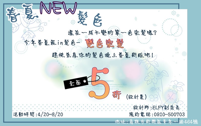 高雄染髮elfy~2012春夏染髮優惠活動