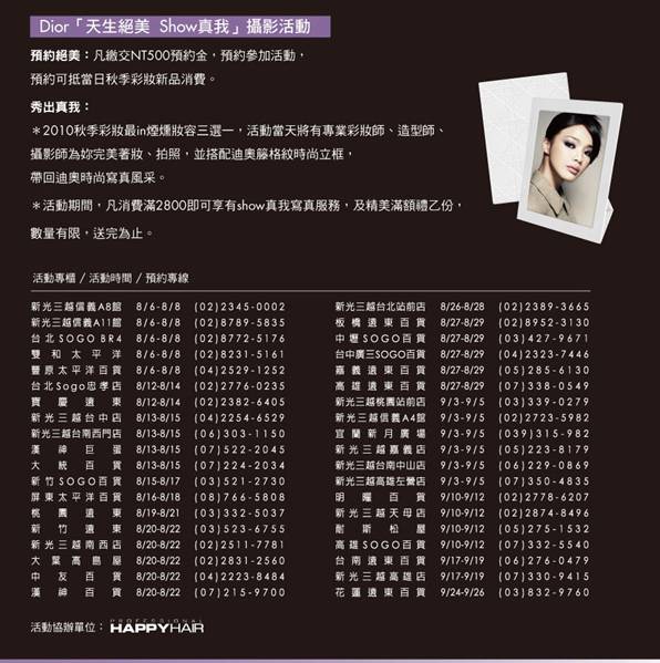 HAPPY HAIR獲邀參與【2010天生絕美SHOW真我攝影活動】髮型協力