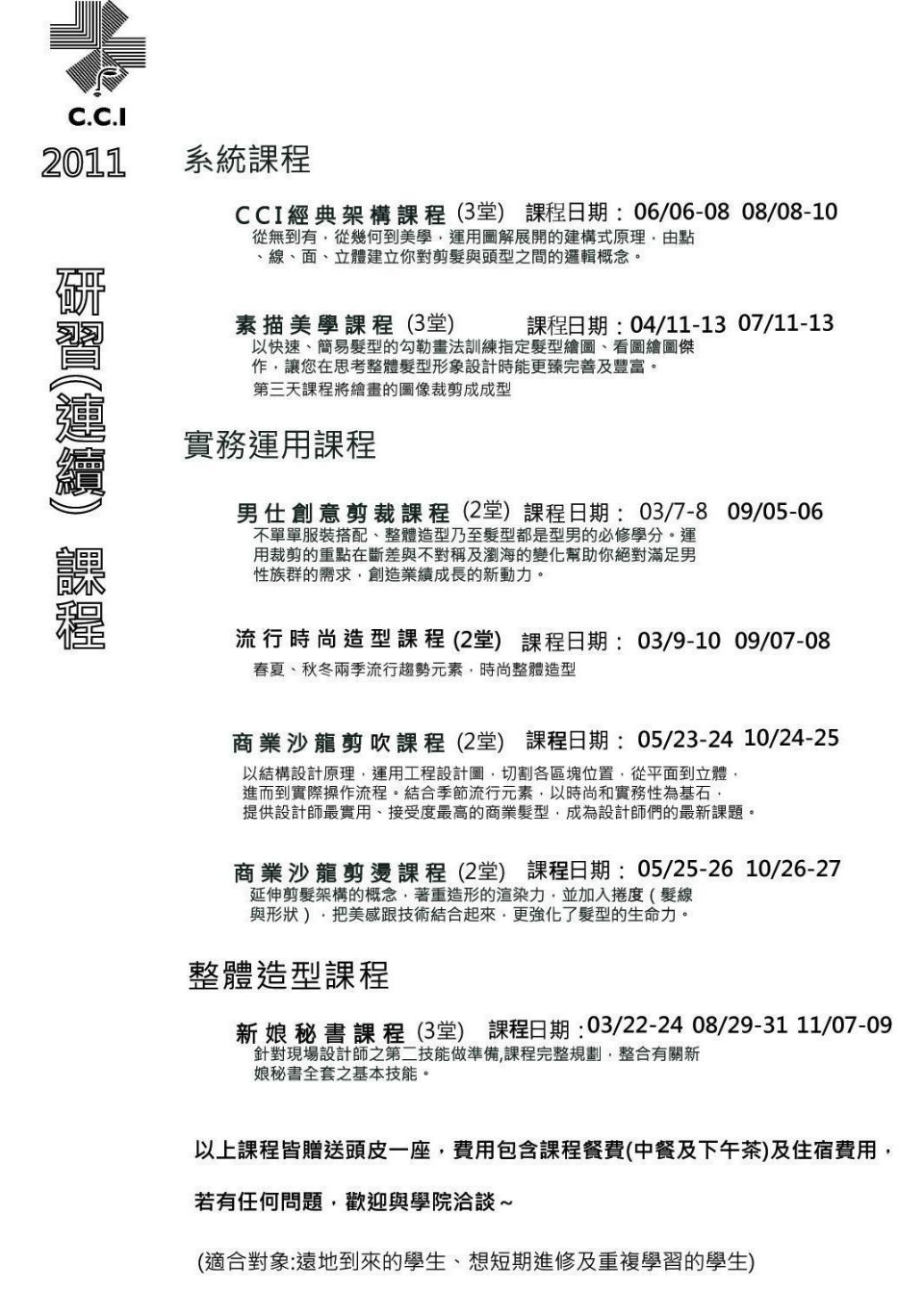 ET表示台灣設計師在整合這個領域的能力較弱,因此間接影響設計師對於染髮、對於顏色選擇上有著些許的恐懼,導致在使用顏色時是較保守的;ET說其實台灣的設計師都很有潛力、基礎功夫都很紮實,就是少了嘗試的勇氣,所以,C.C.I帶出引導式的教育,開設入門性的組合課程,位台灣設計師們量身打造出全方位的學習計畫,讓來到C.C.I教育學院的學員能有更明確的方向與目標。