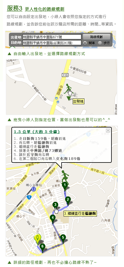 <2> 歐萊德小綠人會依照您所指定的店家幫您規劃路線指引到目的地。