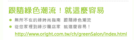 趕緊上網感受一下這貼心與快速的服務吧!www.oright.com.tw 歐萊德|發現台灣‧綠沙龍|