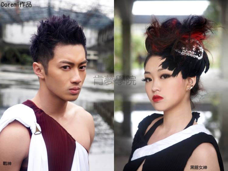 Doremi:以希臘神話之《戰神》、《黑暗女神》為今天畢典成果展主題,在戰神髮型輪廓上表現出線條感重點,而黑暗女神則以黑色與紅色染髮表現黑暗與邪惡。Doremi剪得一款極短造型,出門常被誤認為小男生。喜歡衝浪的Doremi畢業後想到峇里島當髮型師,因為可以衝浪兼賺錢,今天在當任特教老師的弟弟參加畢典顯得非常開心。....更多doremi介紹...