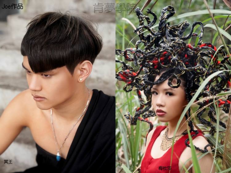 Joe:以希臘神話之《冥王》、《梅杜莎》為今天畢典成果展主題,在冥王造型上以深灰及極淺的灰染髮,呈現強烈對比,而梅杜莎造型則經歷失敗的編織,再拆掉重做後才呈現今天的完美造型。Joe是第六屆畢業生唯一的男生,長的高大挺拔帥帥的,因受到每天穿著光鮮亮麗美髮師的弟弟影嚮而踏入肯夢學院。在家人與朋友的支持下,今天在女朋友見證下將踏入人生新的開始,Joe非常感謝十個月來肯夢全體講師與工作人員照顧下得以畢業,除了滿心感謝外亦是感謝。....更多Joe介紹...