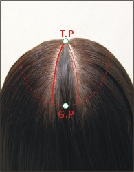 2.髮根寬的移動是一邊定點固定不移動,一邊移動的狀態(如圖示-2 T.P為固定點)。