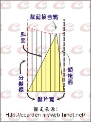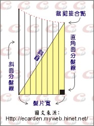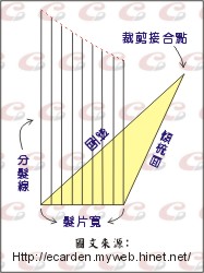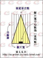 以上三種因素,使得裁剪髮片的外型成為一種三角型的立體幾何圖型,這就是所謂的『髮片型態』。