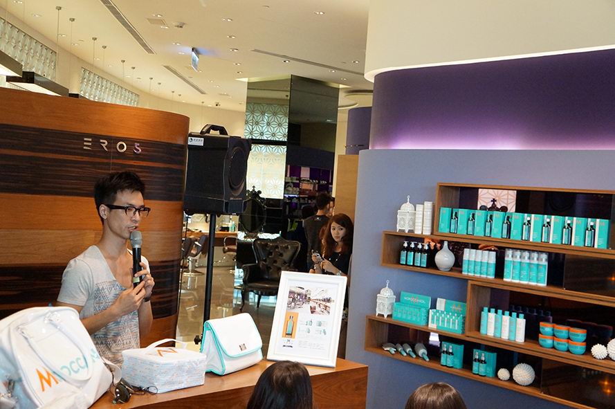 EROS 品牌經理林均樺說明MOROCCANOIL限量包款獨家上市活動