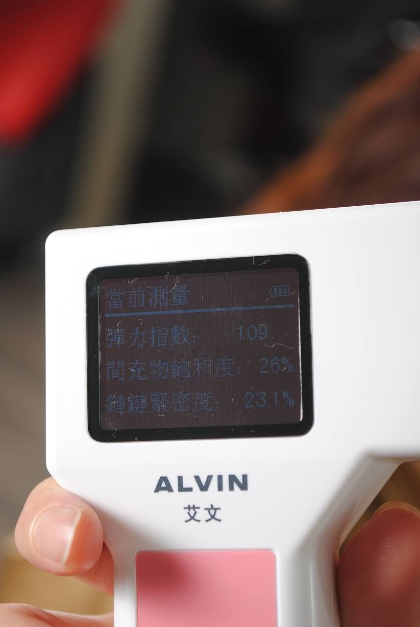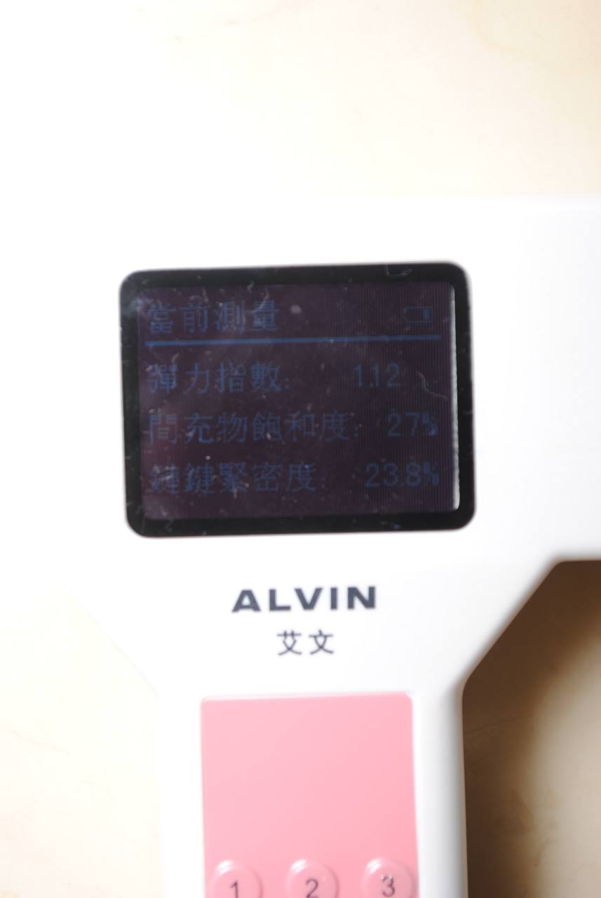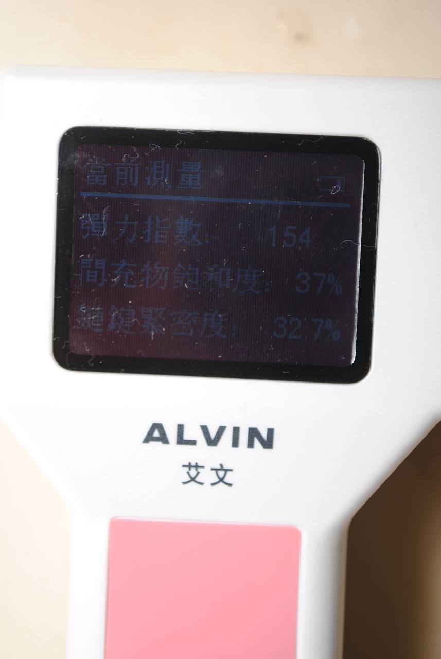 乾髮檢測彈力指數(燙前乾髮測試:彈力指數-115 間充物質-26% 鏈鍵-31.1%)