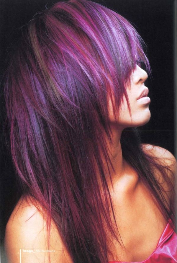 Elaine老師使用棕色當基色,再加上不同深淺的紫色片染及挑染,使髮型的層次與線條感更加明顯。這款髮型讓我感覺到衝突的美感,帶點叛逆又搖滾的氣息,但髮色既甜美又不失性感。Hair by Elaine Sun