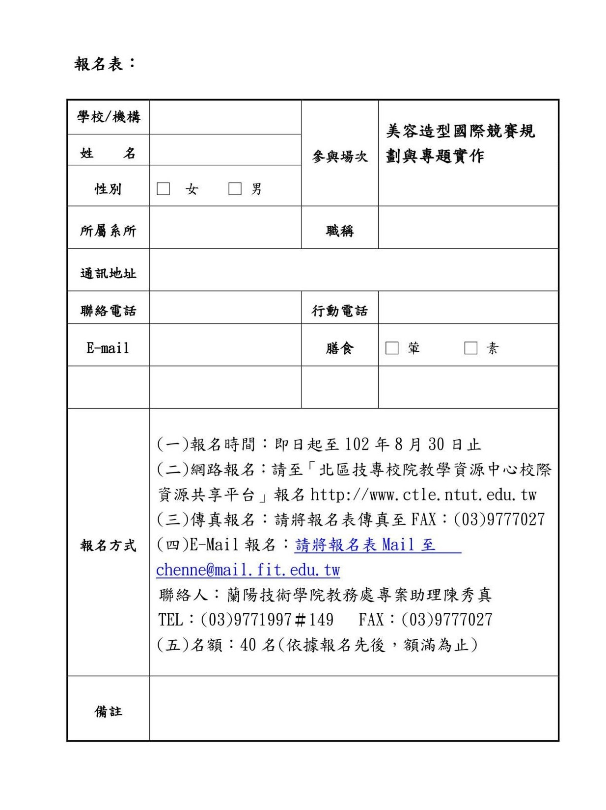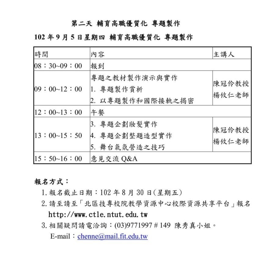 聯絡人:蘭陽技術學院教務處專案助理 陳秀真