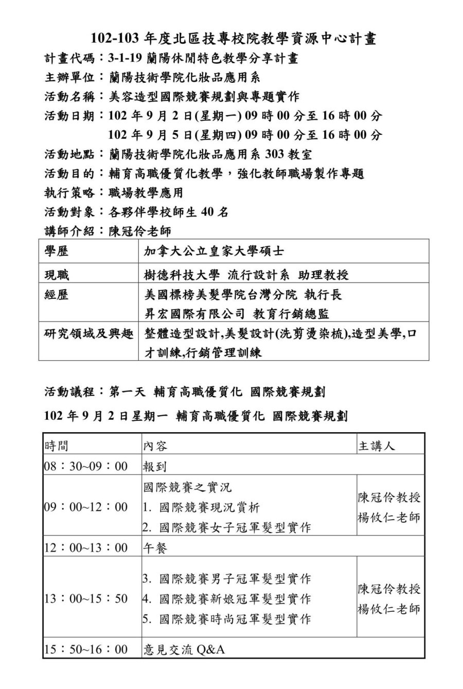 9/2 (一) 國際競賽現況賞析與國際競賽造型技術示範