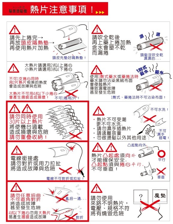 每一片捲子有40幾條保險絲與感應片,不會因捲子排列過密而造成聚溫效果,在燙髮