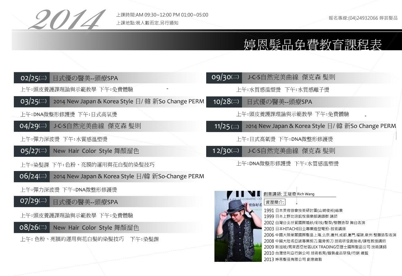 婷恩髮品2014免費教育課程
