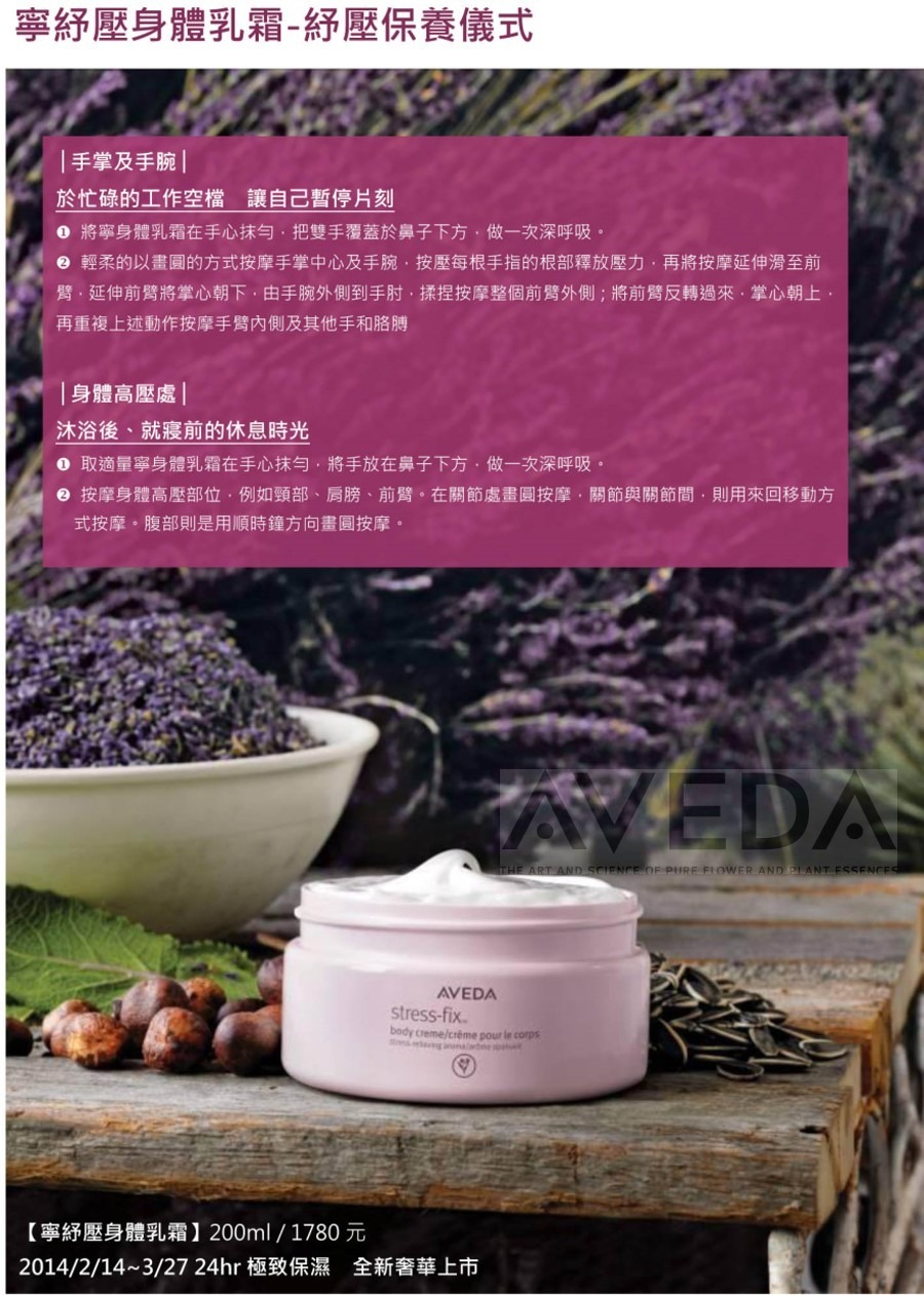 2014 Aveda寧 紓壓身體乳霜日期: 2014-1-9    類別: 業界動態 新品介紹
