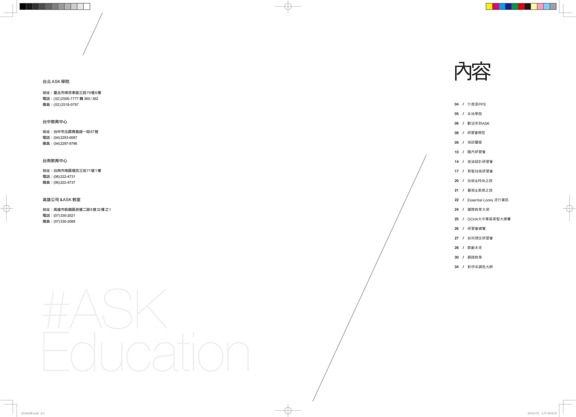 台北的ASK學院秉承國際ASK學院的教育精神,不只提供北部地區現在和未來世代的設計師們相互激發創意的地方,更是台灣的美髮時尚最耀眼的創意燈塔…