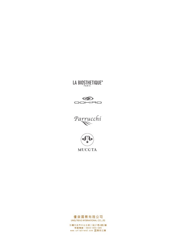 優泉國際有限公司正在籌備超過50年法國新品牌LA BIOSTHETIQUE, 目前主要經營日本Nakagawa株式會社原裝進口品牌MUCOTA, 並代理日本直本工業株式會社最新美髮儀器Parrucchi的專業貿易商,因應台灣美髮產業需求,特別導入2010日本原裝進口最新Parrcchi超微奈米護髮儀器系列機種。