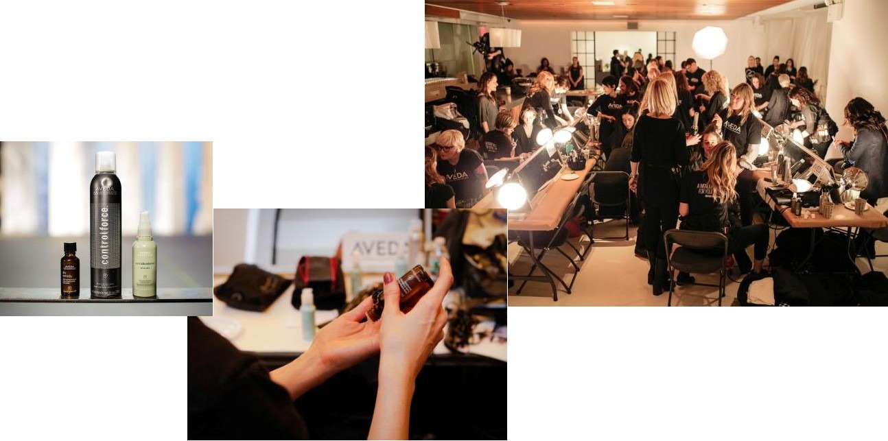 AVEDA除了持續執行綠色後台計劃,在時裝週期間,皆以紐約可飲用之自來水與水壺取帶瓶裝水的使用,後台食物由Aveda 提供來自紐約當地的有機餐點,並將皮草的使用減至最低。