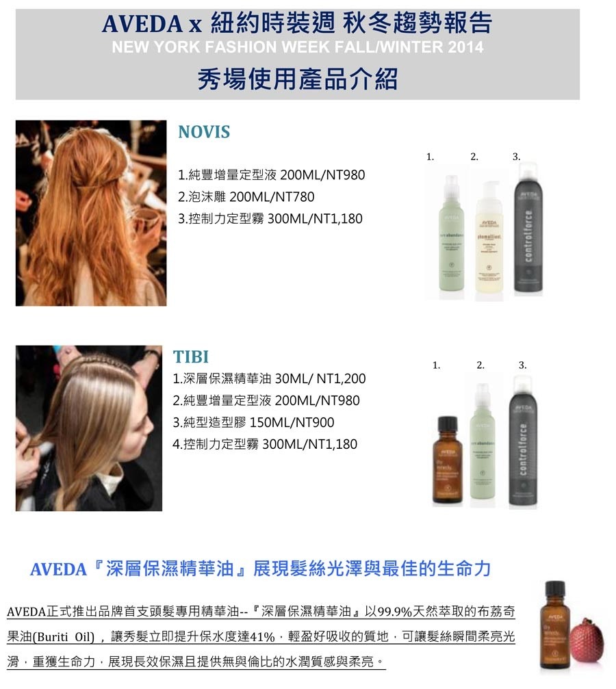 AVEDAx紐約時裝週 秋冬趨勢報告日期: 2014-2-26    類別: 國內外流行資訊