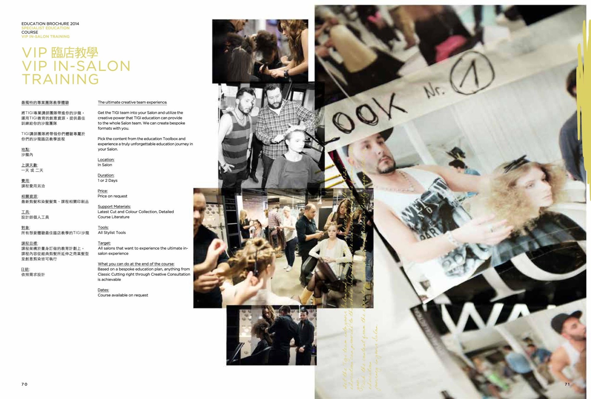 這令人興奮又深入的一對一教學課程是由TIGI創意團隊直接將技巧傳授給您,不但精進基礎技巧外還可針對您和您顧客的需求,讓您充分掌握技巧的運用。