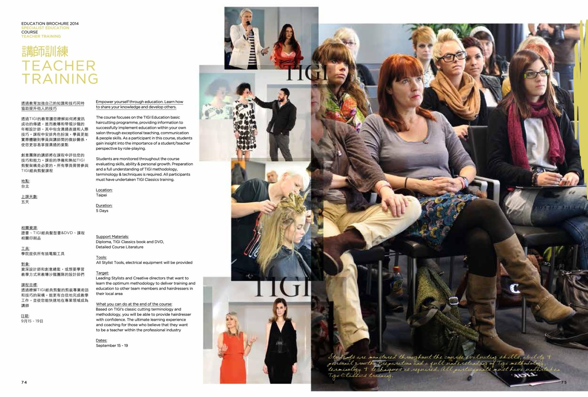 此課程是針對所有TIGI合作沙龍夥伴,並固定安排日期在台北學院開課。