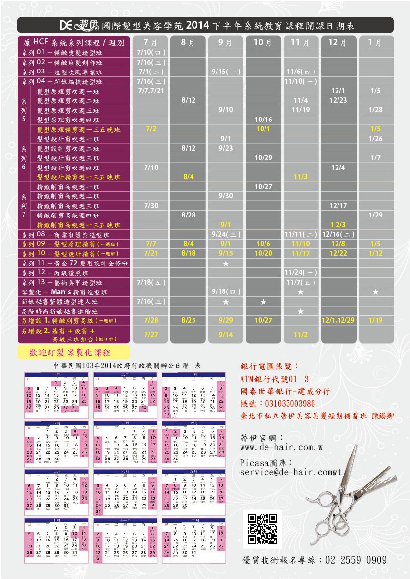 髮型設計精剪(一週班):7/21、8/18、9/15、10/20、11/17、12/22、1/22