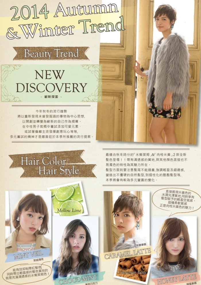 髮型方面則要注意髮尾不能過重,強調輕盈及細緻感,營造出不僵硬的自然髮型,到個性化的酷酷髮型等,本季將會呈現出多元豐富的變化風格!!