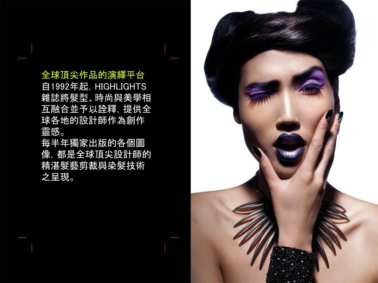 全球頂尖作品的演繹平台---自1992年起,HIGH LIGHTS雜誌將髮型、時尚與美學相互融合並予以詮釋,提供全球各地的設計師作為創作靈感。