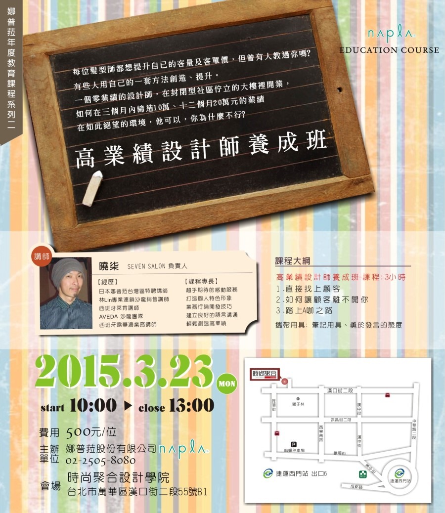 開課地點:時尚聚合/台北市萬華區漢口街二段55號B1(近捷運西門站)