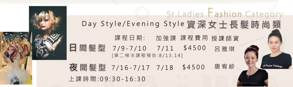 7/16-7/17 夜間髮型 加強課 7/18 師資:唐宥紾 費用:$4500