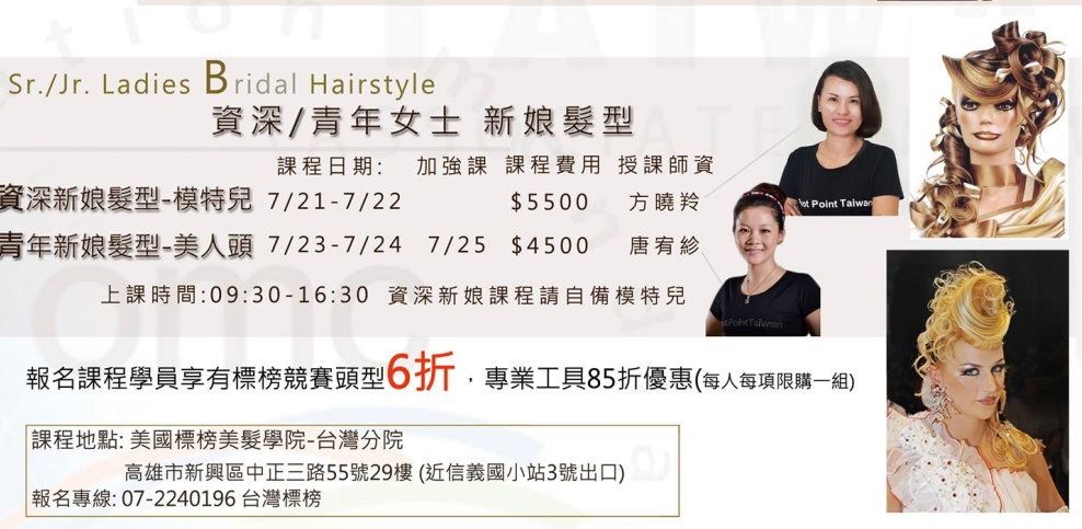 7/15-7/17 創意髮型 加強課7/18-19 費用$6000