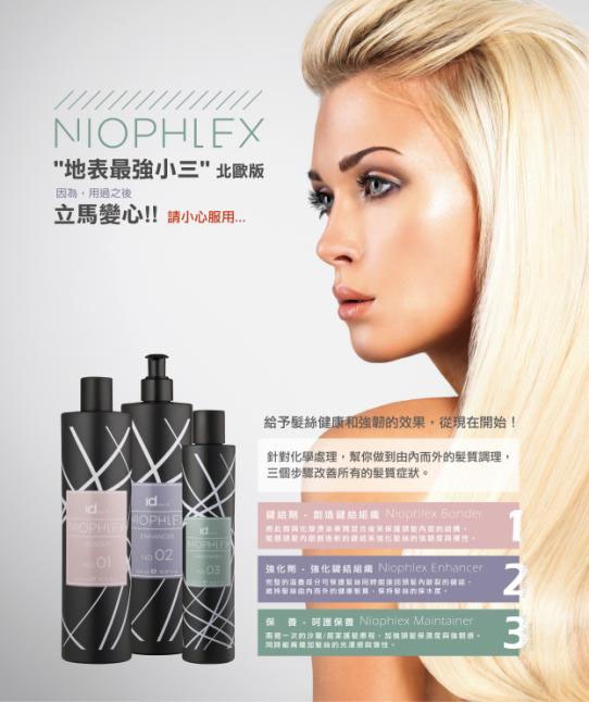 髮色發表會的模特兒全程使用三月剛上市發表來自北歐丹麥IdHAIR旗下品牌 Niophlex, 超厲害的Niophlex能夠修復鍵結、補充鍵結、增加髮絲彈性、強韌度和整體髮況,不但呈現了漂亮髮色的同時也顧及到漂淺髮色的過程髮絲仍然是健康、有彈性及光澤度。