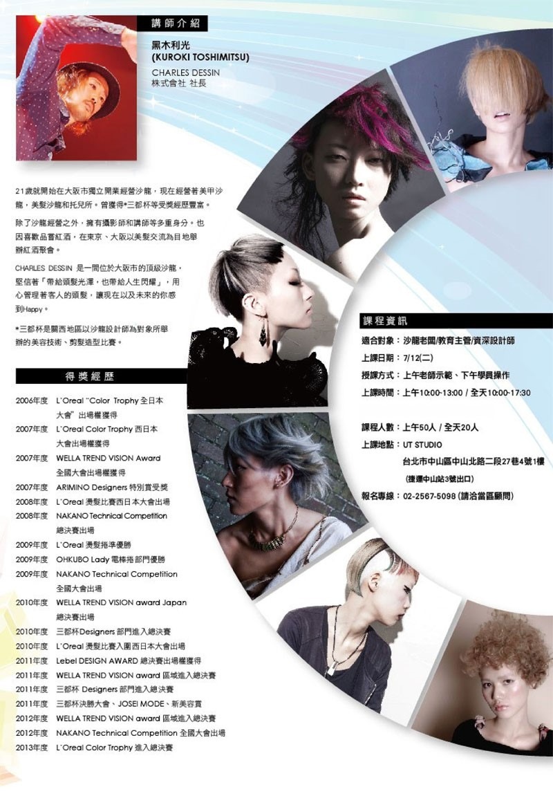 CHARLES DESSIN 株式會社社長-黑木利光,21歲就開始在大阪市獨立開業經營沙龍,現經營著美甲沙龍、美髮沙龍和托兒所。曾獲得三都盃等受獎經歷豐富。除了沙龍經營,並擁有攝影師和講師等多重身份。