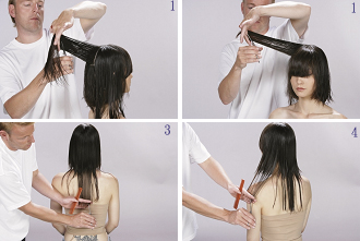 - 修剪至前部髮線,保持同樣的提升角度和指位