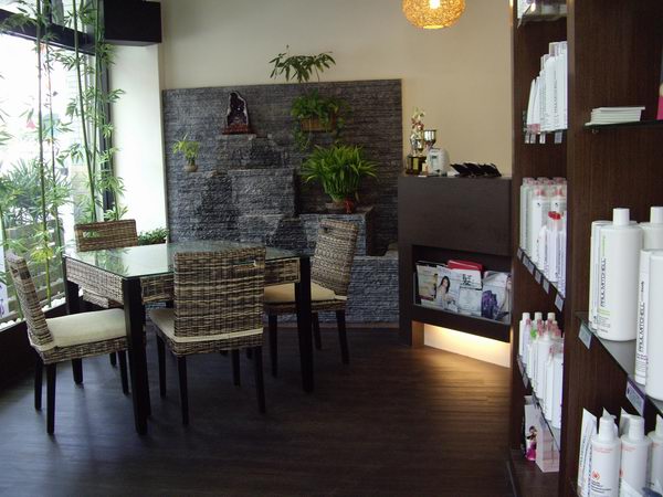 一進到店裡,首先映入眼簾的中式庭園造景,綠竹、假山、流水,加上竹製桌椅,伴隨著潺潺的水流聲,一時間會誤以為所在之處是一家茶藝館而非美髮沙龍,Ivy說這樣的陳設很容易讓人的心境立即舒緩下來,「我們希望客人在塑造美麗髮型的同時,身與心也能受到妥善的呵護。」